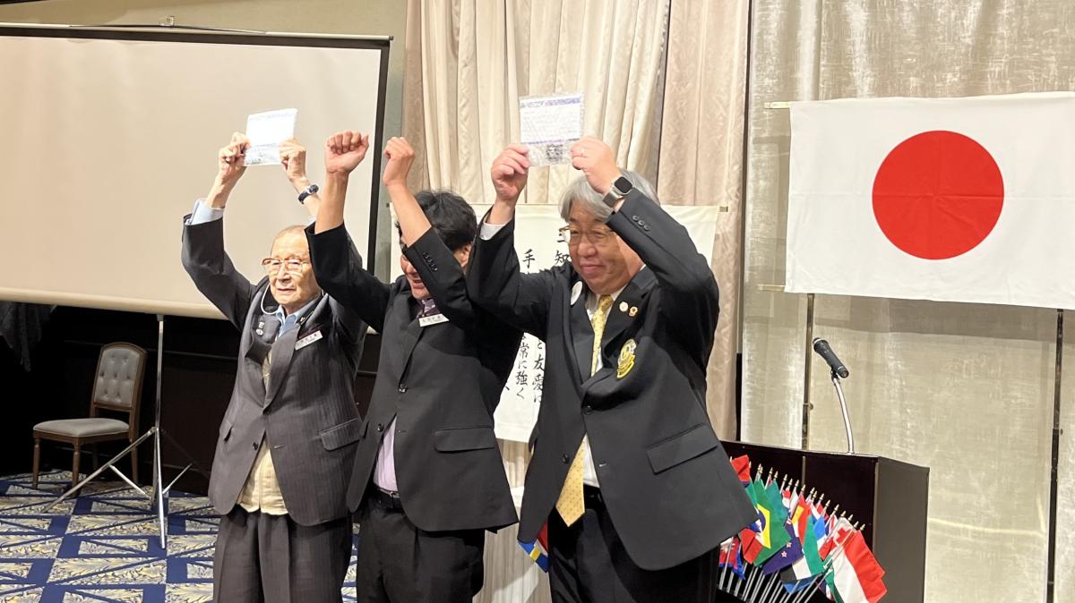 席上、長年の奉仕と貢献に敬意を表し、L内田千尋、L廣瀬直樹の両氏へ累進メルビン・ジョーンズ・フェローアワードピンを贈呈。また、新たに島田泰孝様、田所総様、國松繫樹様の入会式を厳粛に執り行い、クラブの絆と活動の裾野がさらに広がる節目の例会となりました。