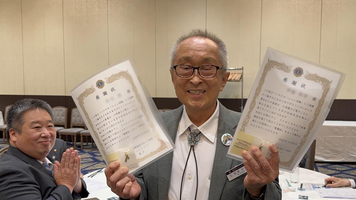 ヘアドネーション表彰:L古河 守男氏に感謝状・バッジを贈呈